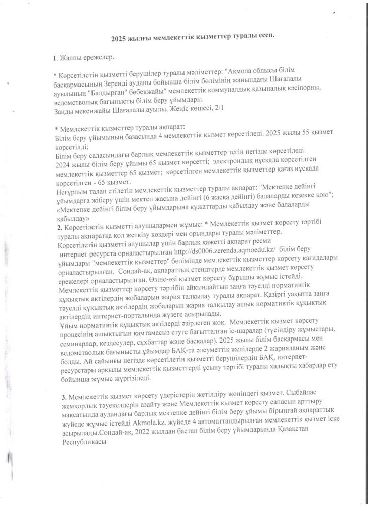 2025 жылғы мемлекеттік қызметтер туралы есеп.